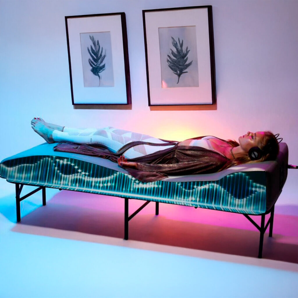 El sistema V.I.B.E.™ funciona a través de una camilla equipada con transductores integrados que convierten la música en vibraciones perceptibles por todo el cuerpo. Esta experiencia inmersiva y multisensorial promueve la relajación, la regeneración celular y el equilibrio del sistema nervioso.
