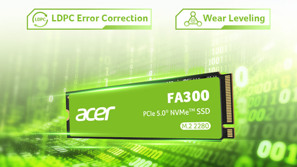 En materia de protección de datos, el Acer FA300 integra corrección de errores LDPC y tecnología inteligente de nivelación de desgaste para garantizar la integridad de los datos de manera consistente y un rendimiento sostenido bajo cargas de trabajo exigentes. Asimismo, con una resistencia de hasta 1500 TBW en el modelo de 2 TB, el FA300 ofrece durabilidad para el uso a largo plazo.