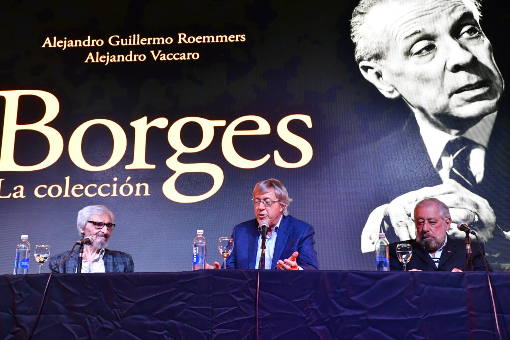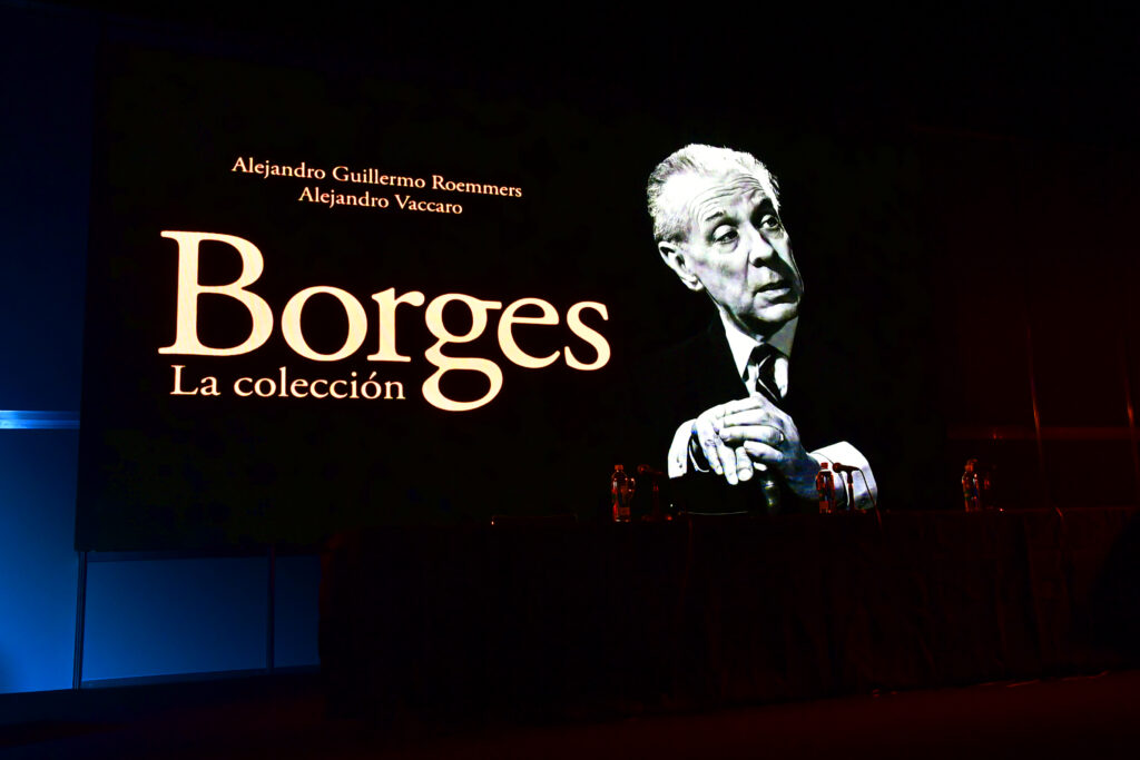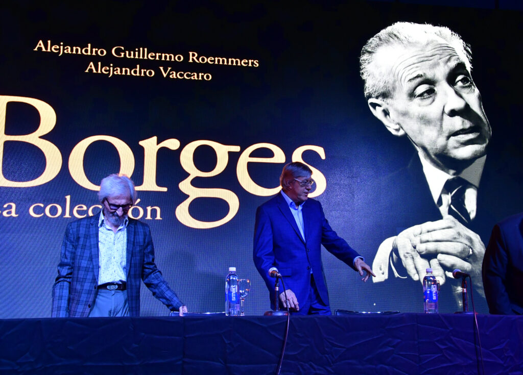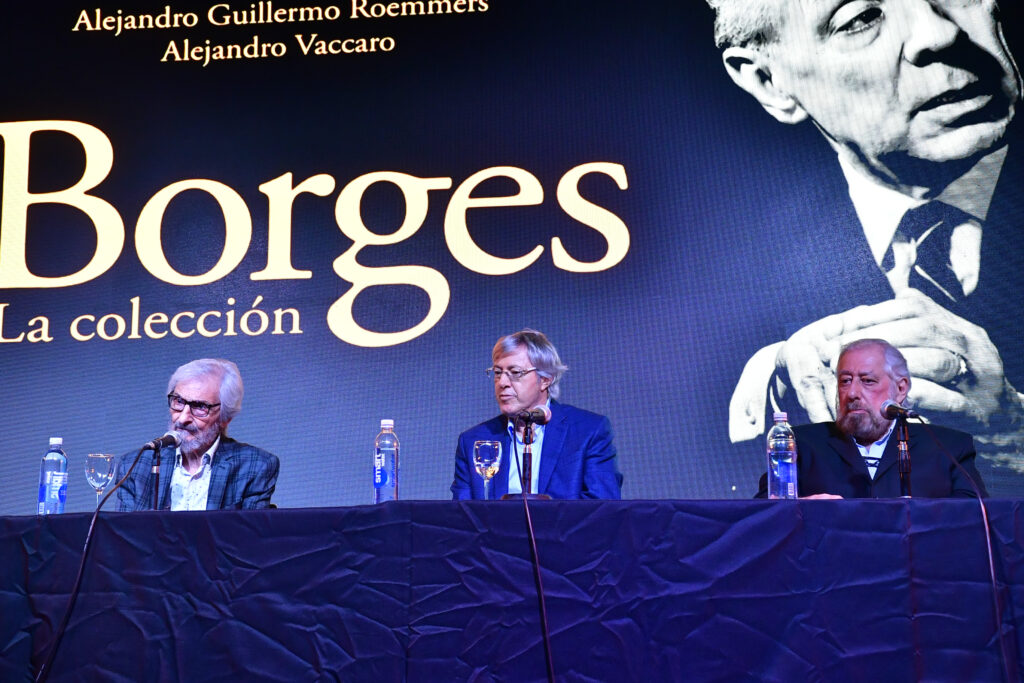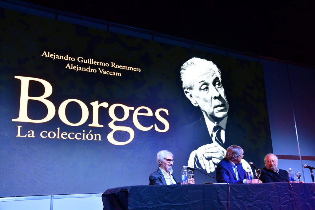 La Sala José Hernández, la de mayor capacidad de La Rural, se llenó para escuchar a Alejandro Roemmers y Alejandro Vaccaro junto a Roberto Alifano. Allí se presentó Borges. La colección, un libro que reúne más de 30 mil piezas del Borges menos transitado: cartas, manuscritos y escritos tempranos.