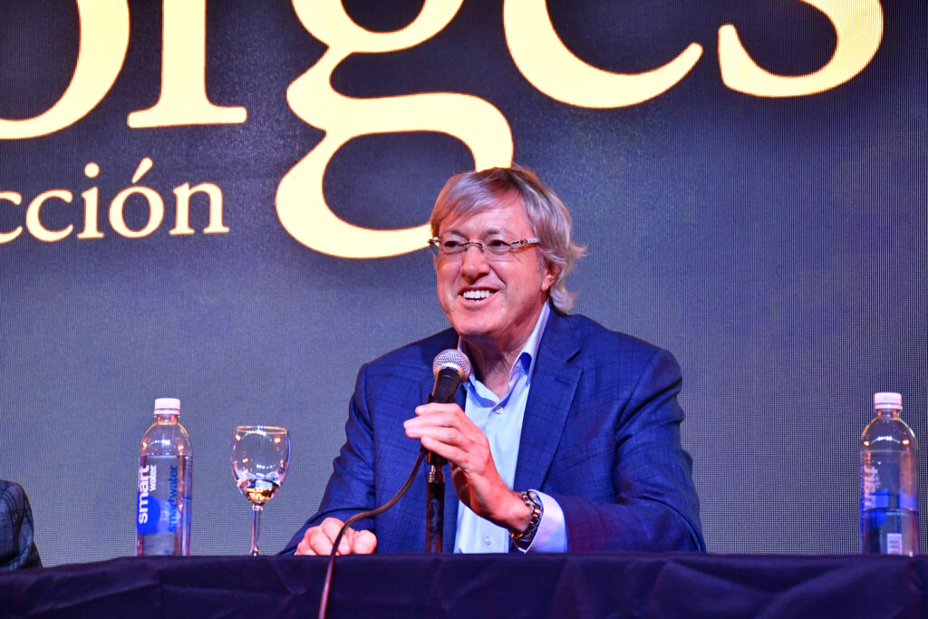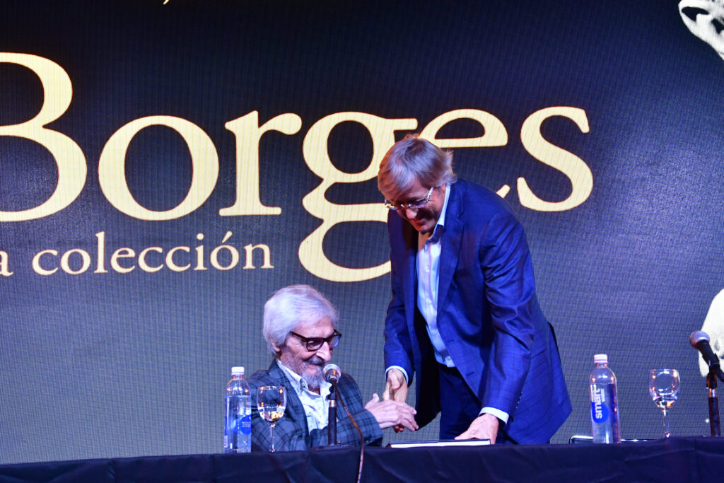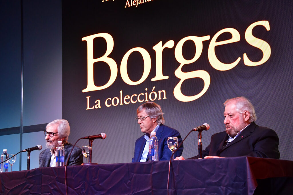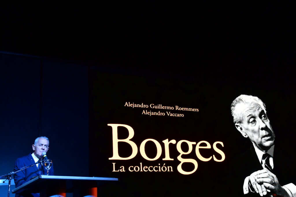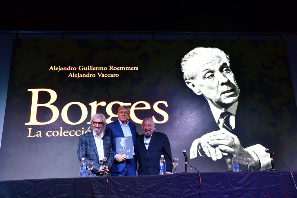 La Sala José Hernández, la de mayor capacidad de La Rural, se llenó para escuchar a Alejandro Roemmers y Alejandro Vaccaro junto a Roberto Alifano. Allí se presentó Borges. La colección, un libro que reúne más de 30 mil piezas del Borges menos transitado: cartas, manuscritos y escritos tempranos.